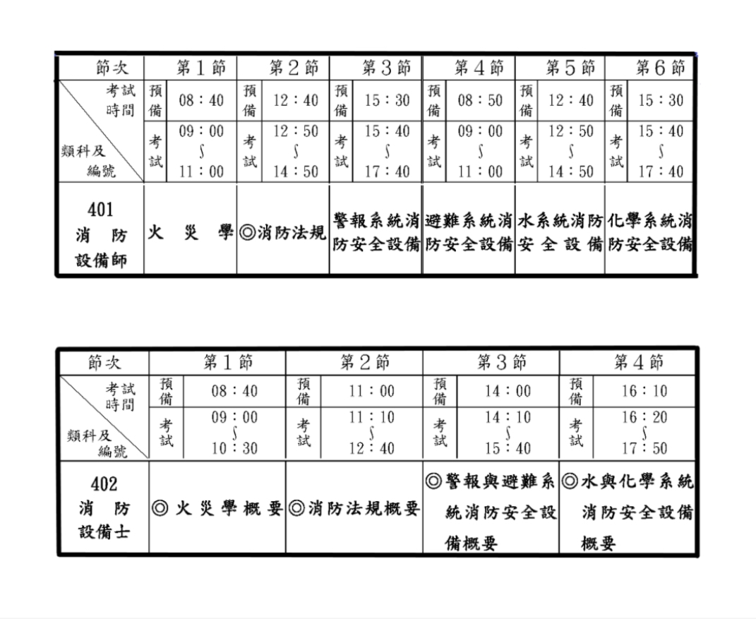 習設備師考試科目(如消防工程學、消防法